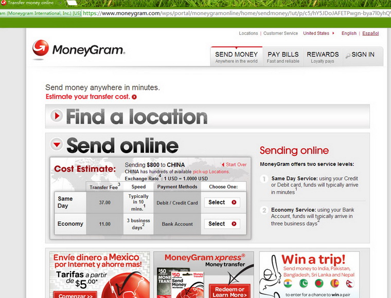 3.Go to the MoneyGram Location or MoneyGram website transfer money;