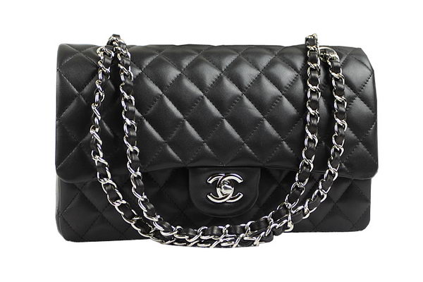 Chanel 2.55 Series Classic Flap Bag 1112 Black Original Sheepskin Leather Silver