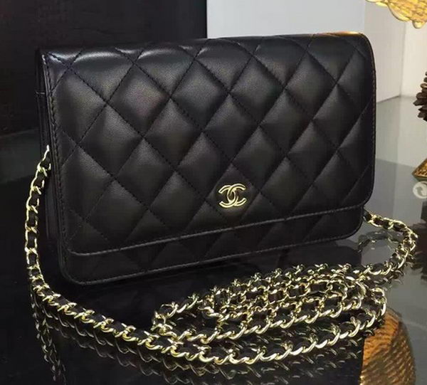 Home » Replica Handbags >> Chanel Handbag >> Chanel Flap Bags >> Chanel WOC mini Flap Bag Black Sheepskin A5373 Gold