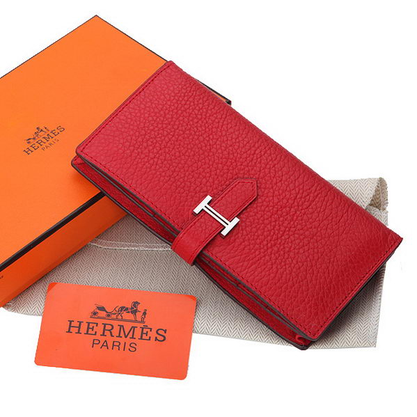 - Hermes Bearn Japonaise Bi-Fold Wallet Litchi Leather A208 Red