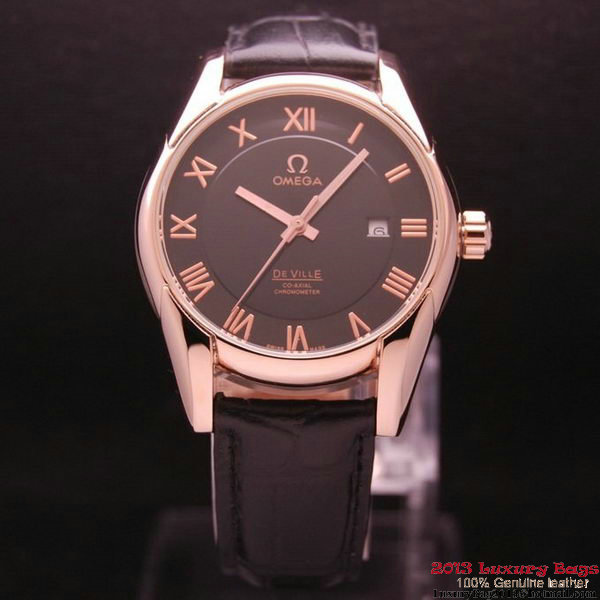 - OMEGA DE VILLE Co-AXIAL CHRONOMETER Red Gold on Black Leather Strap OM77024