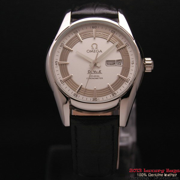 OMEGA DE VILLE HOUR VISION ANNUAL CALENDAR Steel on Black Leather Strap OM77108